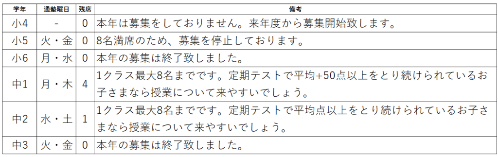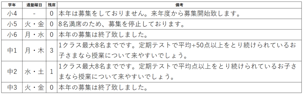 新小4・新小5の募集開始日・・・2023年1月9日(祝月)