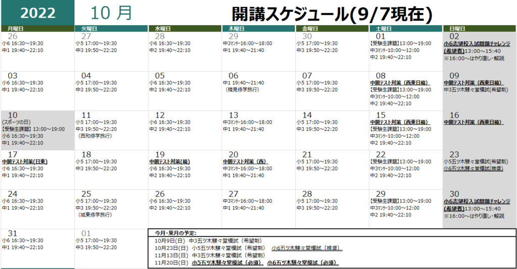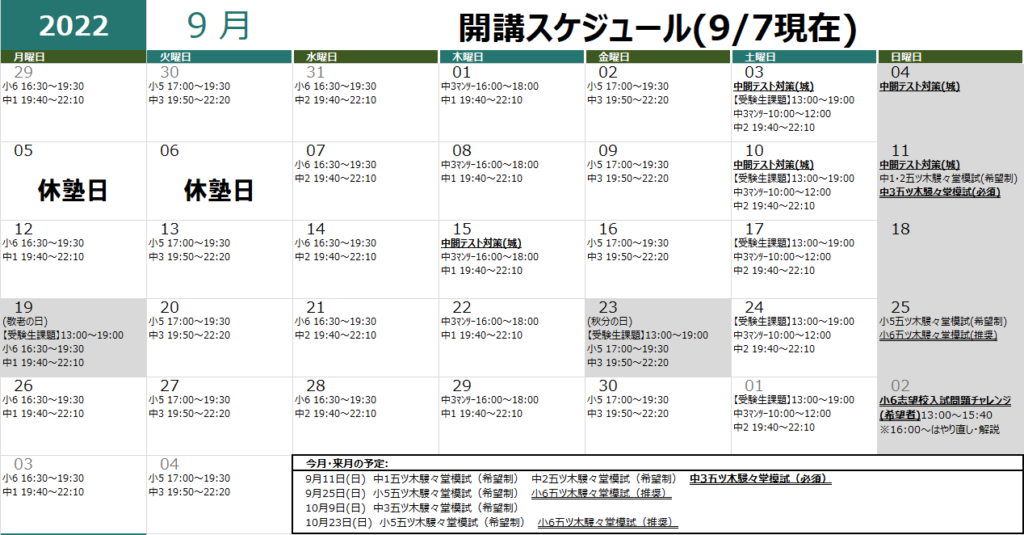 9月5日(月)、6日(火)は休塾日のため、全ての授業はありません。