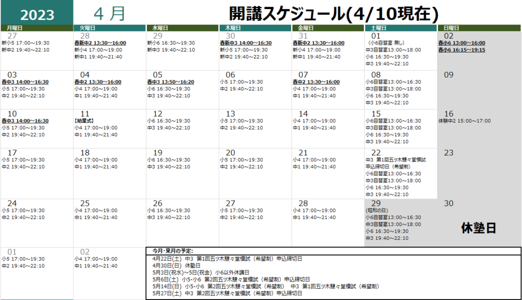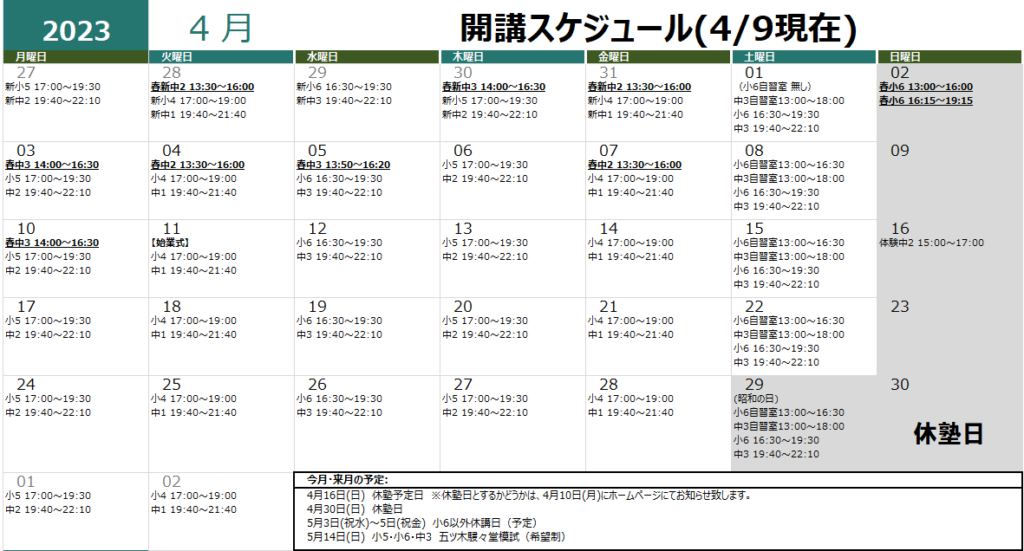 ★4月30日(日)は休塾日のため、自習室もご利用頂けません。ご注意下さい。★