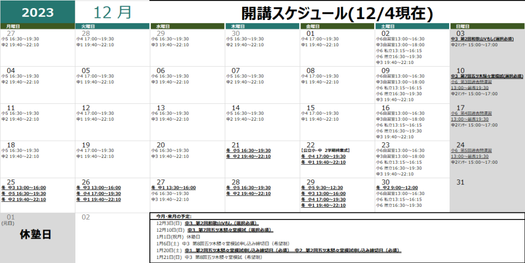 (和歌山の私立中学校は、本日12月15日(金)の午前9時から開始しています)