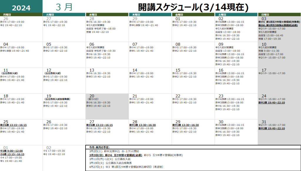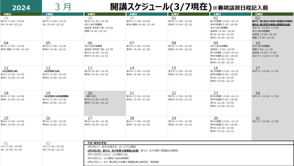 上記のように、春期講習を組ませて頂きましたので、宜しくお願い致します。