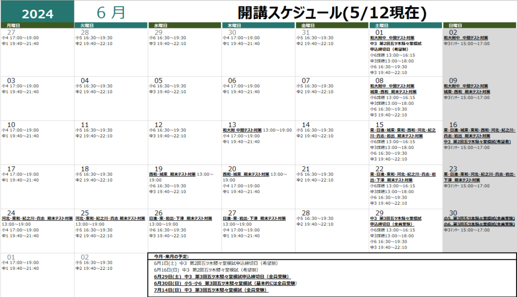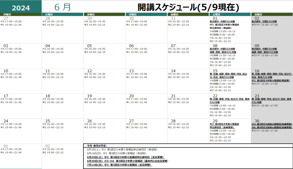 6月23日(日)まで毎週何かしらの定期テスト対策があるところまで来れて嬉しいです。