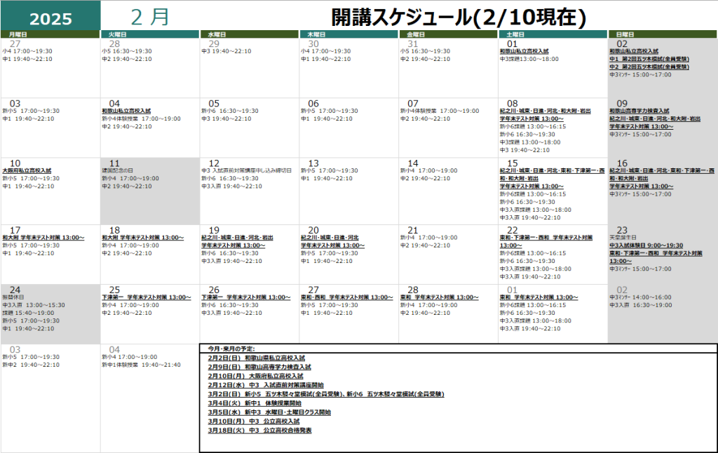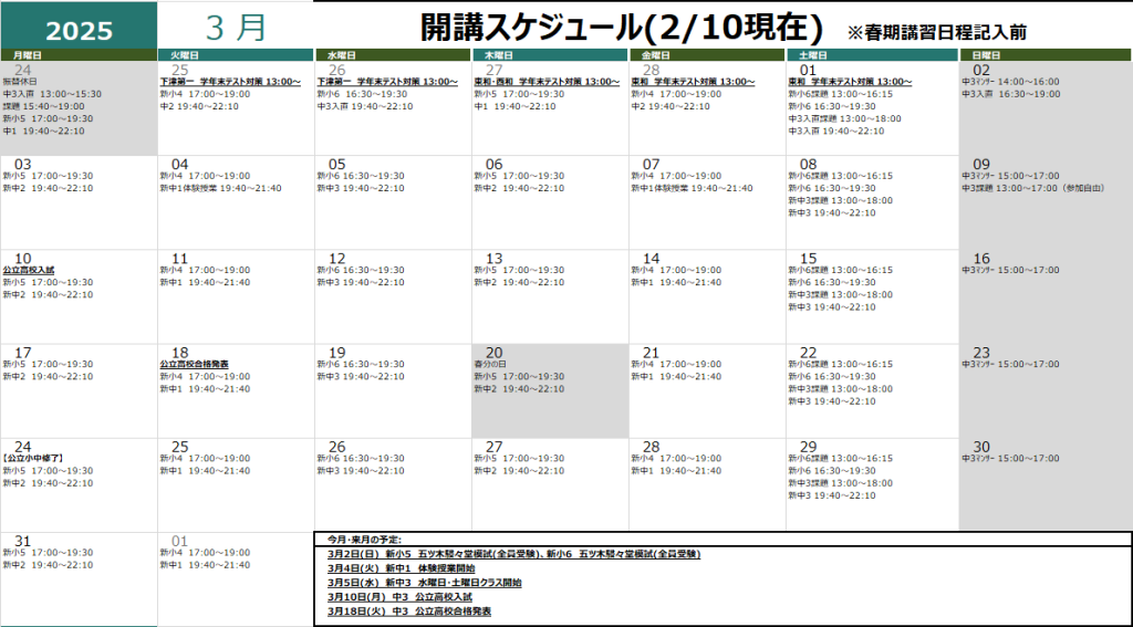 春期講習日程は3月10日(月)に発表予定です。宜しくお願い致します。